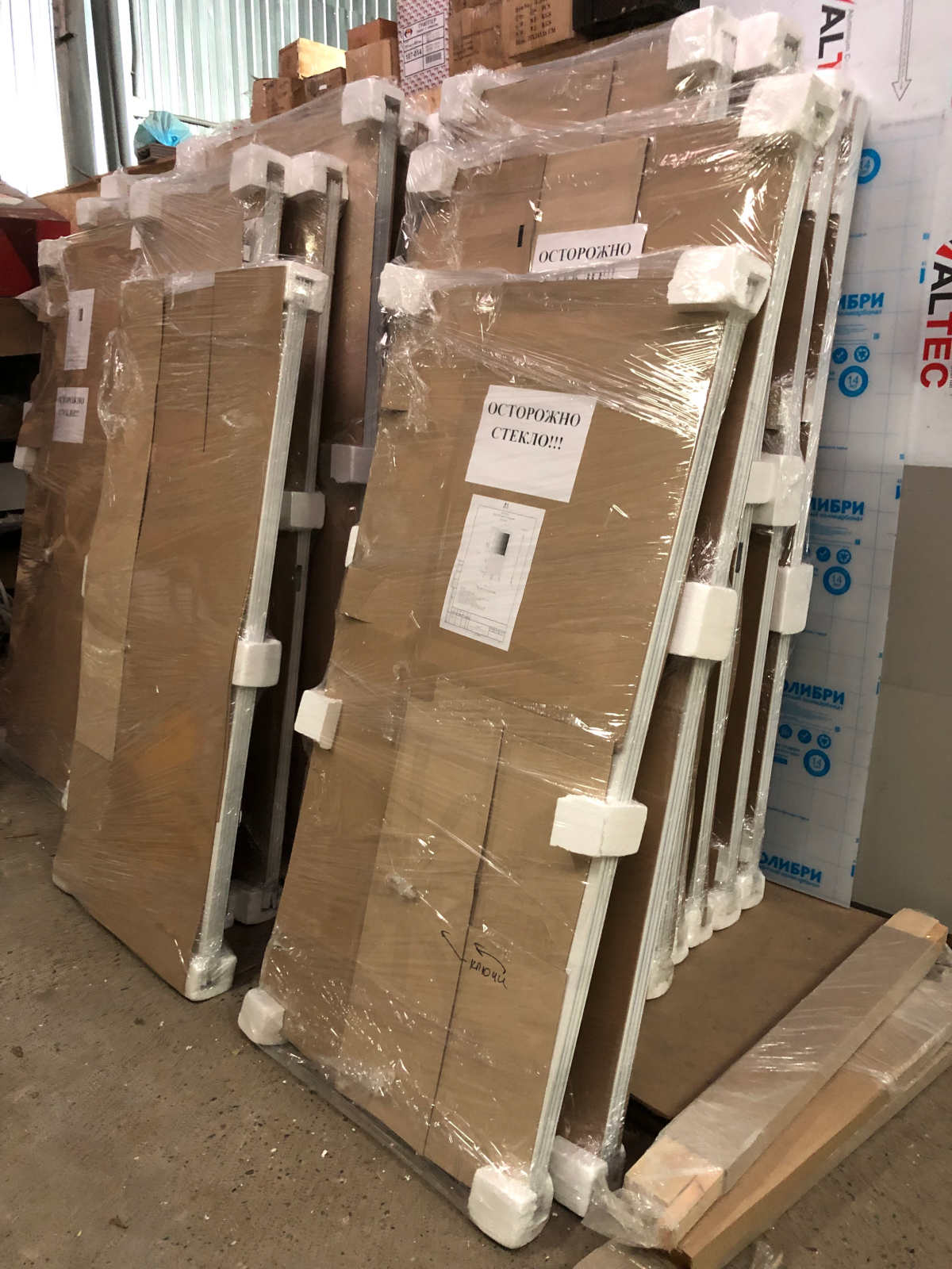 Двери ЧП Обвязка – алюминиевый профиль марки 6063 Т5, покрыт порошковой эмалью RAL - 9003. Петли-навесные подшипниковые двухкартные «FURAL ПДП-2», ручка - нажимная из нержавейки «APECS», автоматический выпадающий порог. Остекление - cвето-прозрачное заполнение: двойное стекло марки М1, толщиной 4 мм. Глухое заполнение: двойной композитный лист с полимерным покрытием, толщиной 4 мм. Наполнитель-теплозвукоизоляция «KNAUF Insulation». Общий вес 1800 кг.